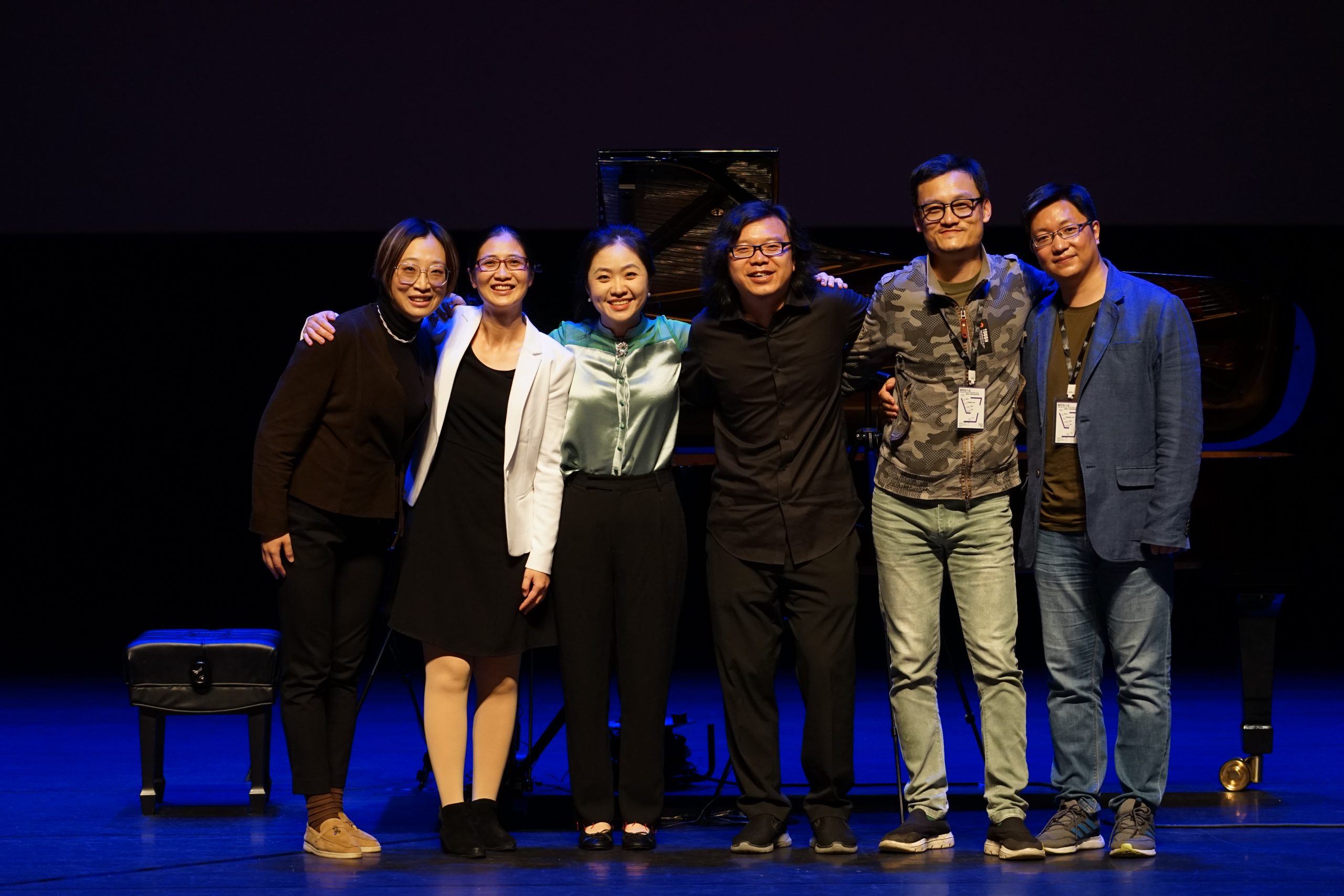左起:作曲家邵青、作曲家秦毅、鋼琴家俞湘君、新媒體藝術家達彥、作曲家徐志博、音響工程師房大磊